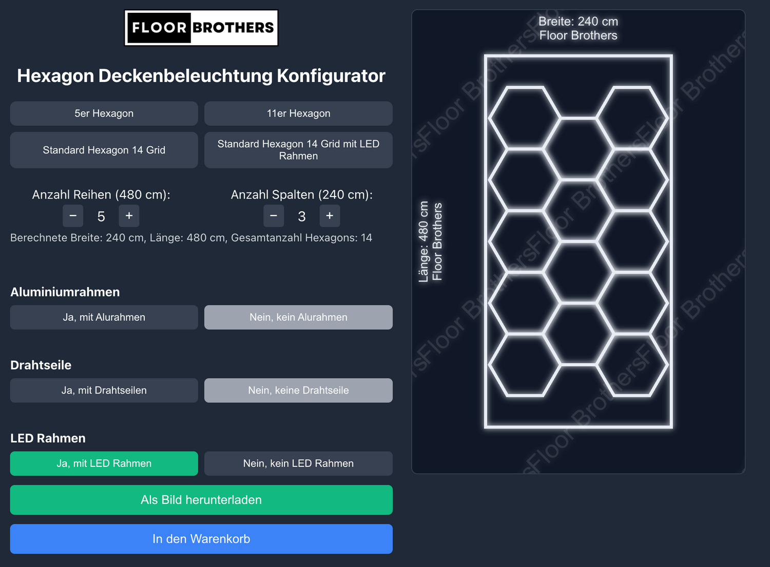 Mit unserem Hexagon-Konfigurator gestaltest du deine eigene, leistungsstarke Deckenbeleuchtung für Garage, Werkstatt oder Aufbereitungshalle.