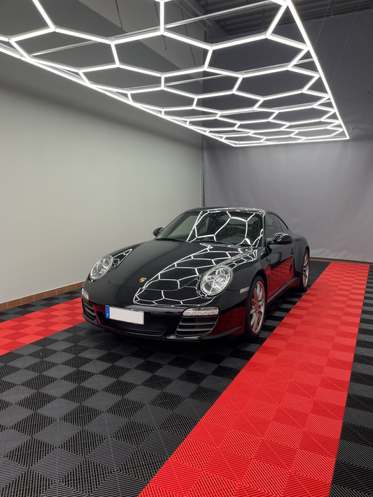 Mit unserem Hexagon-Konfigurator gestaltest du deine eigene, leistungsstarke Deckenbeleuchtung für Garage, Werkstatt oder Aufbereitungshalle.